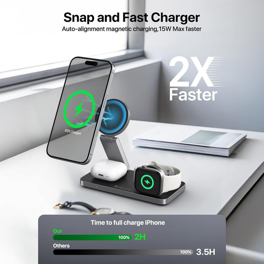 MagCube | 3-in-1 Wireless Charging Station (Qi2 Certified)
