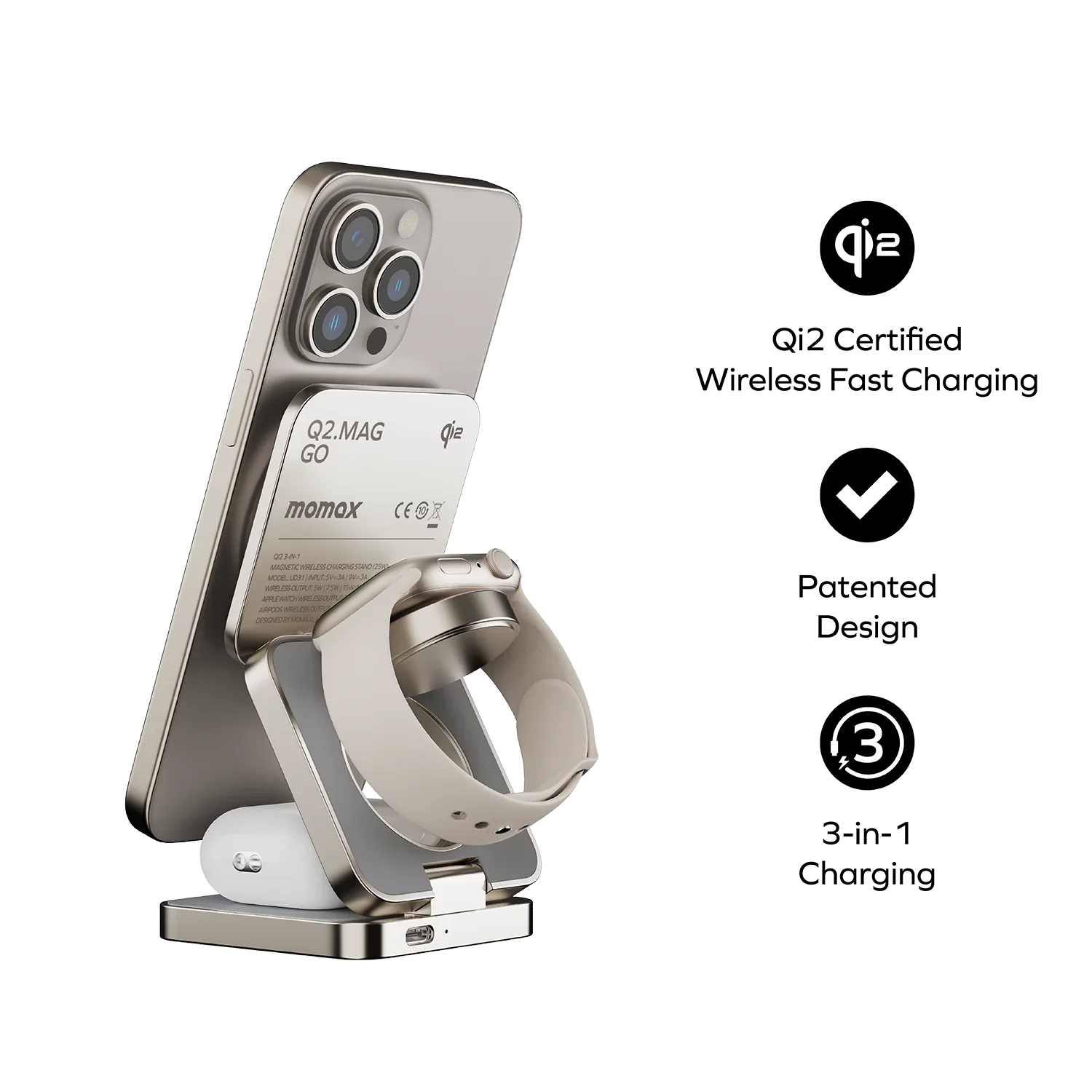 Q2.Mag 3-in-1 Foldable Qi2 15W Magnetic Wireless Charging Stand